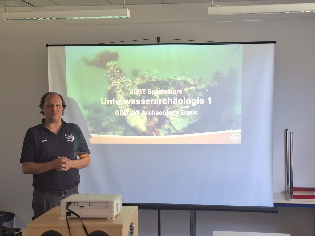 Der eigens entwickelte Spezialkurs umfasst vier Tage. In fünf Theoriemodulen werden die Teilnehmer mit den Grundlagen, historischen Hintergründen, rechtlichen Grundlagen und vor allem mit den Dokumentationsmethoden vertraut gemacht. Zwei Gastreferenten ergänzen das Programm. Bernhard Frommelt gibt uns eine sehr fundierte Einführung in die Photogrammetrie und bereichert die Dokumentationstauchgänge immer wieder mit aktuellen 3D-Berechnungen. Der passionierte Unterwasserfilmer Jens-Uwe Lamm referiert zu optischen Grundlagen sowie Einstellungen an Action-Cams und High-End-Kameras und erläutert, wie aus dem Filmmaterial ein guter Film wird.