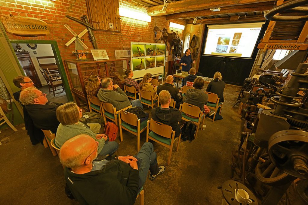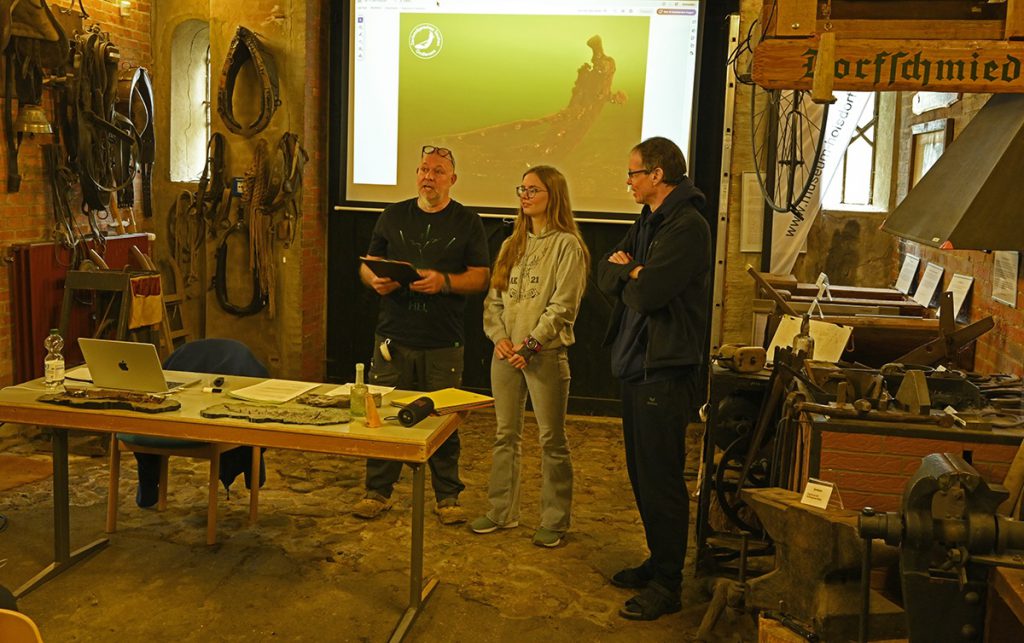 Am Abend kommt die Gruppe im Dorfkrug zum gemütlichen Essen und Ausklang samt Citizen-Science-Talk mit Ingo Oppelt zusammen. Der Sonntag beginnt wieder im Dorfmuseum. Die Taucher präsentieren ihre Untersuchungsergebnisse, erstellen eine Fundmeldung und erhalten ihr Brevet. Nach einer kleinen Filmpause präsentiert der Vertrauensmann des Landesamtes Samir praktisches aus der aktiven Bodendenkmalpflege.
